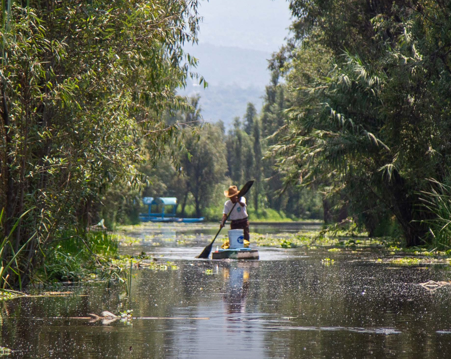 One of the Xochimilco wetland channels that supply water for traditional agricultural systems under restoration with the Chinampa-Refugio model, Mexico City, Mexico. Photo credit: Victor Martinez. Submitted by: Conservation International