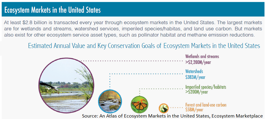 At least $2.8 billion per year flows through ecosystem markets in the United States, according to Ecosystem Marketplace research.