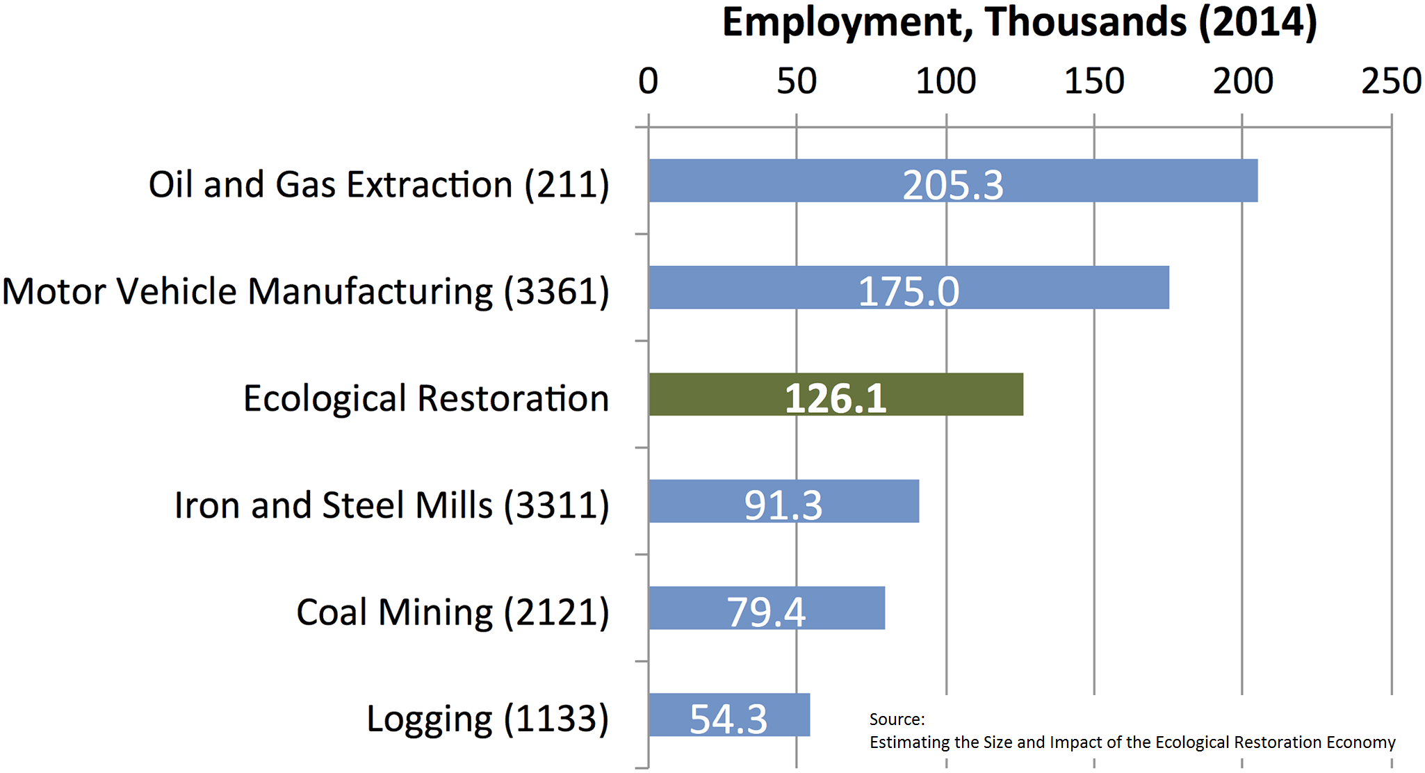 “The jobs created by restoration activities are located mostly in rural areas, in communities hard hit by the economic downturn,” report authors wrote. “Restoration also stimulates demand for the products and services of local businesses such as plant nurseries, heavy equipment companies, and rock and gravel companies.”