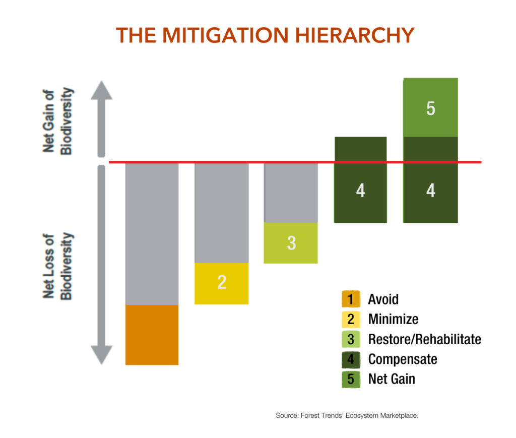Still, ensuring like-for-like compensation can be extremely difficult. That further underscores the need for the mitigation hierarchy, and looking first to avoid and minimize impacts as much as possible. This can be done in part through sustainable sourcing, say the authors.