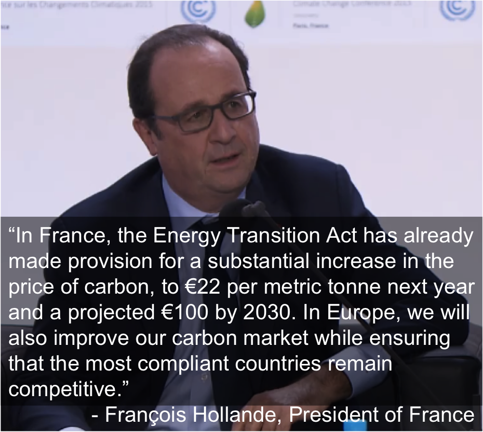 They spoke in four different languages, but the leaders of Canada, Chile, Ethiopia, France, Germany, and Mexico shared one message yesterday at a high-level event in Paris: The time for carbon pricing has come.