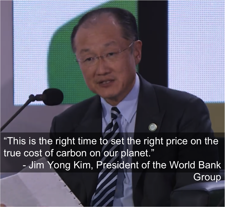 The high-level panel was convened by World Bank Group President Jim Yong Kim and the International Monetary Fund’s Managing Director Christine Lagarde. The event marked the official launch of the Carbon Pricing Leadership Coalition as well as the Transformative Carbon Asset Facility, a $500 million initiative launched by Germany, Norway, Sweden, Switzerland, and the World Bank Group aimed at spurring carbon pricing initiatives, especially in developing countries.
