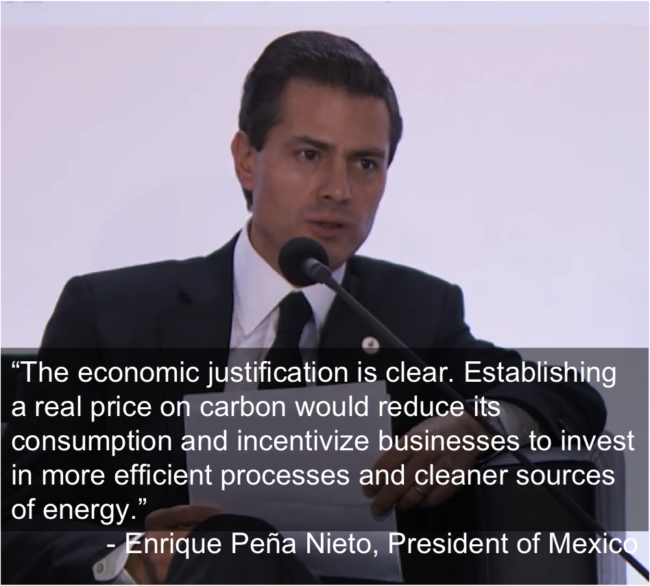 In addition to the six heads of state that championed carbon pricing on Monday, the Carbon Pricing Panel also includes Filipino President Benigno Aquino III as well as two subnational leaders: Governor Jerry Brown of California and Mayor Eduardo Paes of Rio de Janeiro. All told, 40 countries and 23 cities, states, or provinces covering about 12% of global greenhouse gas emissions have put a price on carbon either through a cap-and-trade program or a tax, according to the World Bank.