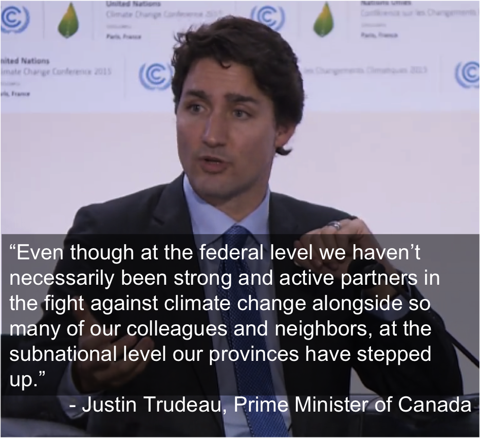 The subtext: Even the PM acknowledges that Canada is known more for its oil sands than its climate leadership. But as Trudeau notes, the real action is in the provinces. British Columbia implemented a carbon tax in 2008, and Quebec last year linked its cap-and-trade program with California’s, with Ontario recently announcing plans to make it a trifecta. Even Alberta, Canada’s biggest oil-producing province, will implement a C$20/tonne carbon tax in 2017, ramping up to C$30/tonne by 2018.