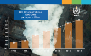 Carbon dioxide concentrations are now higher than they’ve been for over 3 million years. Source: World Meteorological Organization