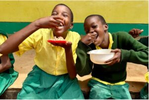 “Before carbon, the babies weren’t coming to school,” she says, as dozens of those babies swarm to greet her outside the Marungu Primary School.